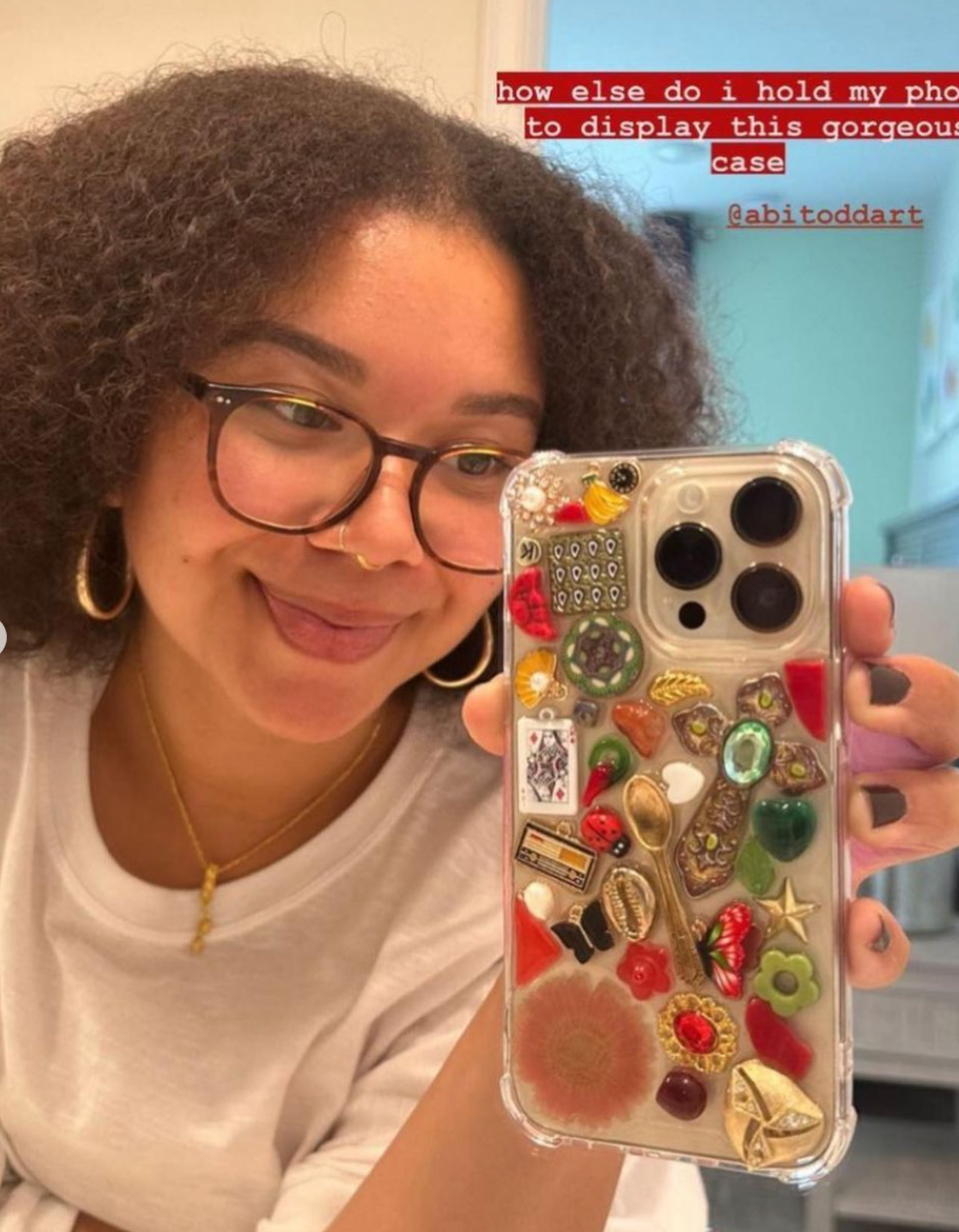 Handmade Case compatible with iPhone 14 Pro. Created using industrial-strength resin, dissembled jewelry bits, and odd charms from my collection, each case is one-of-a-kind. Includes raised bumpers for extra protection. To customize your own 14 Pro, checkout with the blank Custom Case. More info about cases can be found on FAQs page.